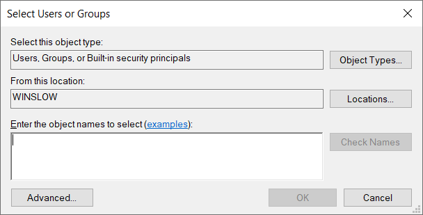 Check the boxes to Allow or Deny particular actions for each user for more granular security control. Click Advanced to open the Advanced Security Settings window in Windows. For more information, visit Access Control Overview.